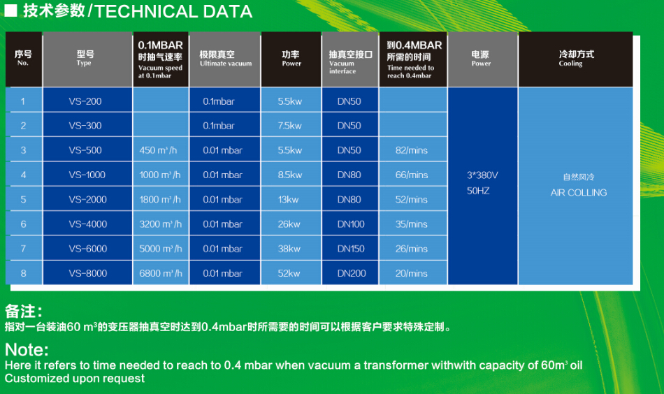 真空机组参数表
